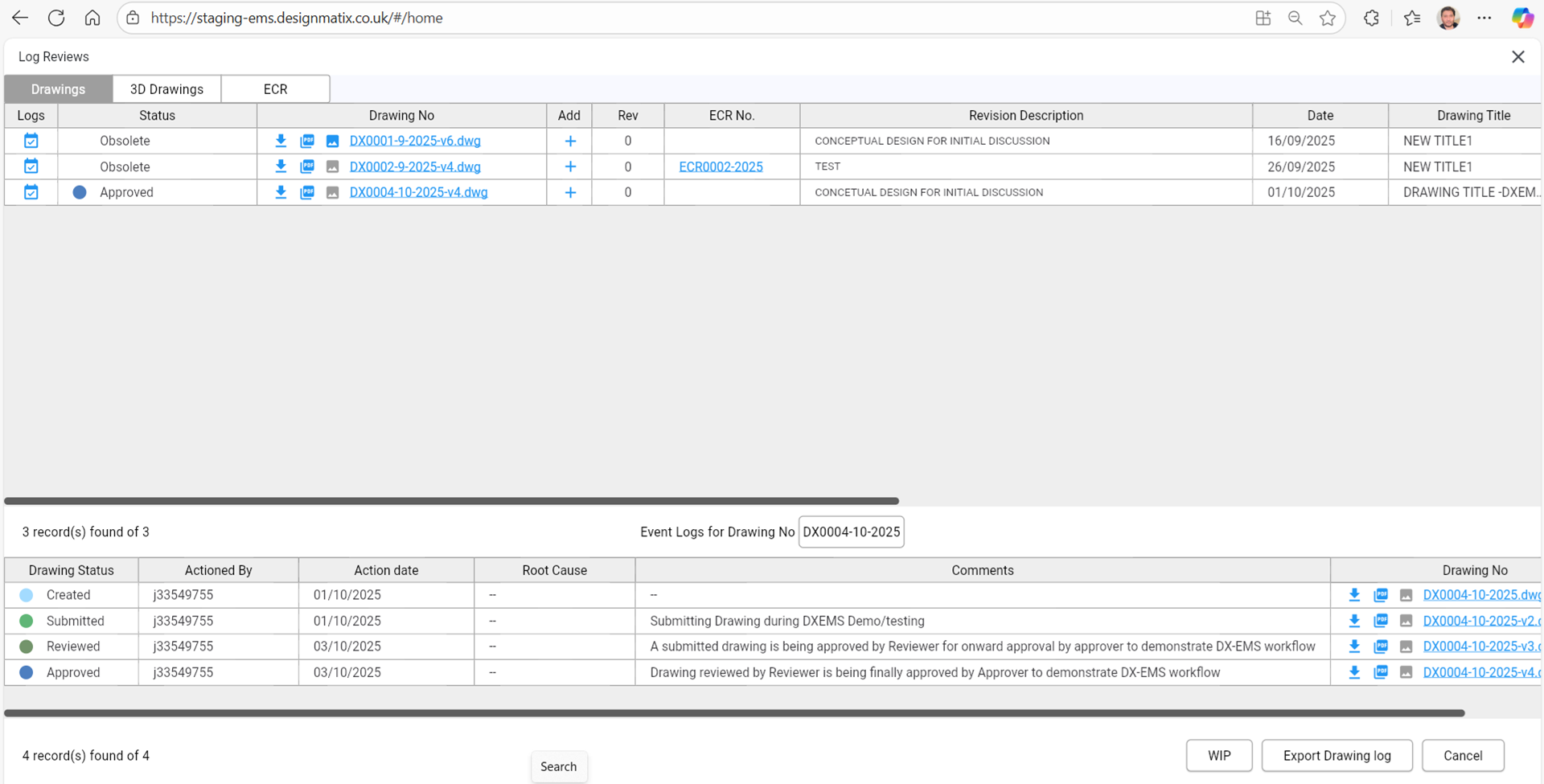 DXEMS offers fully integrated, flexible, scalable and collaborative environment facilitating automation of Engineering Change workflows (ECR/ECO).