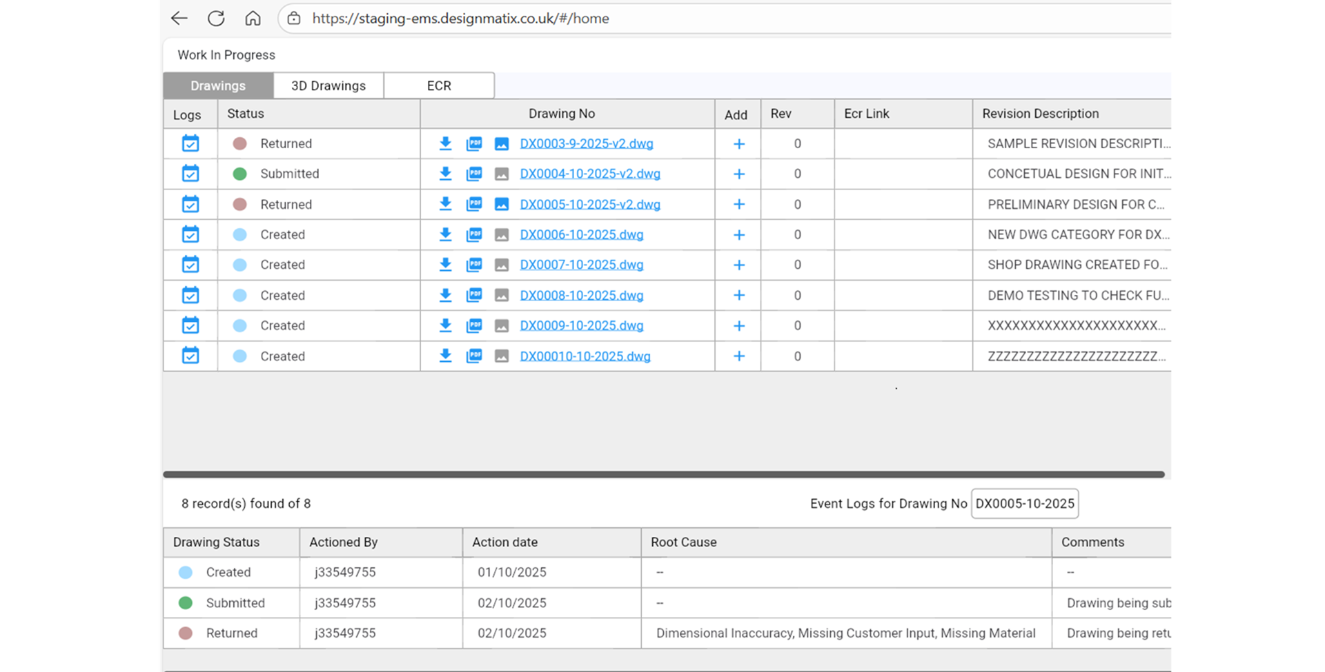 - Work-In Progress Dashboards and Drawing logs to differentiate between open and closed drawings
